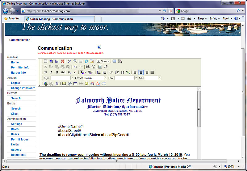 The communications module in Online Mooring helps you to more effectively communicate with your applicants, in routine situations as well as emergency situations.