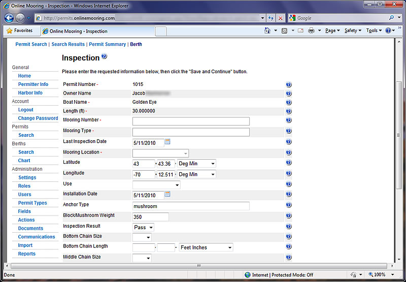 Administrators can search for berths based on the date of the last inspection, and can send out messages to applicants to notify of necessary inspections.