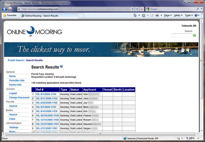 Authorized people will see a list of the wait lists on the Online Mooring home page. They can click on any of the wait lists to see the current list, in priority order.